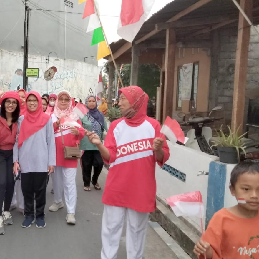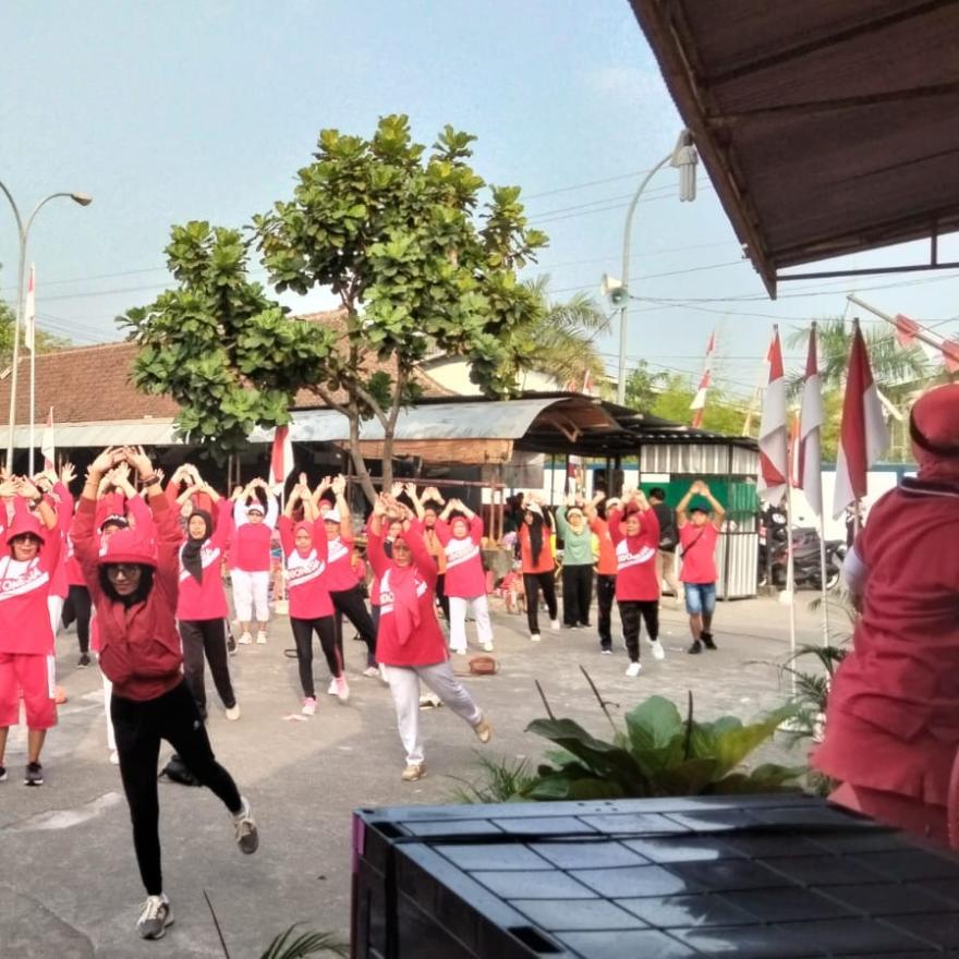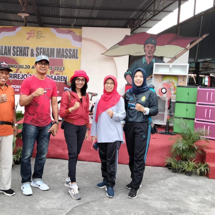 Guna menyemarakkan peringatan Hari Kemerdekaan Republik Indonesia ke 78, warga Singosaren menggelar senam dan jalan sehat pada Ahad, 20 Agustus 2023.