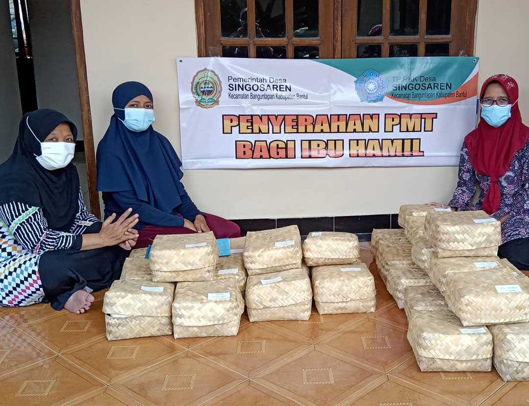 Sabtu, 28 Agustus 2021, Ketua TP PKK Kalurahan Singosaren bersama Pokja III & Pokja IV TP PKK Kalurahan Singosaren serta Kader Srikandi Singosaren membagikan paket PMT Ibu Hamil dan Ibu Nifas di wilayah Singosaren I, Singosaren II, dan Singosaren III. Pada kesempatan ini juga dilaksanakan edukasi kepada para ibu hamil agar mengikuti vaksinasi covid -19; penyuluhan kepada ibu hamil risti; menyampaikan kesiapan para kader mendampingi para ibu hamil; menyapa keluarga bayi yang ibunya meninggal tentang ketersediaan donor ASI-nya.